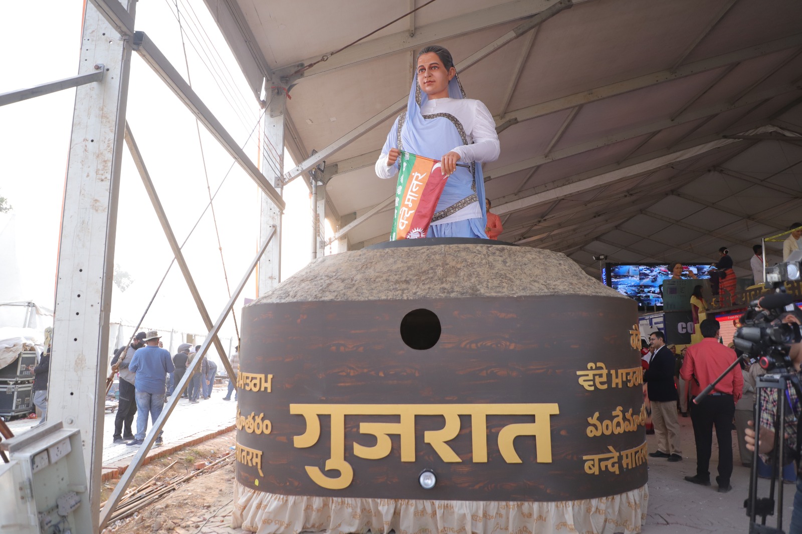 આ ટેબ્લોના અગ્રભાગમાં વીરાંગના મેડમ ભિખાઈજી કામાને સ્વરચિત ‘વંદે માતરમ’ લિખિત ધ્વજ સાથે દર્શાવવામાં આવ્યા છે. જે તેમણે સૌ પ્રથમ વખત વિદેશીભૂમિ પર વર્ષ ૧૯૦૭માં પેરિસમાં લહેરાવ્યો હતો. આ ધ્વજ જર્મનીના બર્લિનના સ્ટુટગાર્ટની ‘ઇન્ડિયન સોશિયાલિસ્ટ કોન્ફરન્સ’મા પણ રજુ કરવામાં આવ્યો હતો. મેડમ કામાની આ ધ્વજ લહેરાવતી અર્ધ-પ્રતિમાની નીચે દેશના બંધારણમાં સ્વીકૃત વિવિધ ભારતીય ભાષામાં ‘વંદે માતરમ’નો ઉલ્લેખ કરવામાં આવ્યો છે.