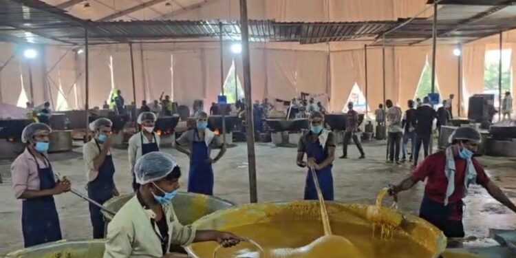 શક્તિ, ભક્તિ અને આસ્થાના ત્રિવેણી સંગમ સમા જગવિખ્યાત યાત્રાધામ અંબાજી ખાતે ભાદરવી પૂનમ મહા મેળામાં માતાજીના મનભાવન પ્રસાદ મોહનથાળનું અવિરત વિતરણ થઈ રહ્યું છે. અંબાજી મેળામાં ૧૦૦૦ થી ૧૨૦૦ ઘાણ જેટલી પ્રસાદ બનાવામાં આવતી હોય છે.