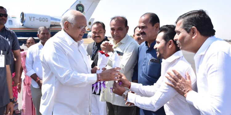 ગુજરાત રાજ્યનાં મુખ્યમંત્રી શ્રી ભૂપેન્દ્રભાઈ પટેલ ભાવનગરમાં જનસુખાકારીના વિવિધ પ્રકલ્પોના લોકર્પણ અને ખાતમુર્હુત સમારોહમાં ઉપસ્થિતિ રહેવા ભાવનગર પધાર્યા હતા.ભાવનગર એરપોર્ટ તેમનું ભાવસભર સ્વાગત કરવામાં આવ્યું હતું.