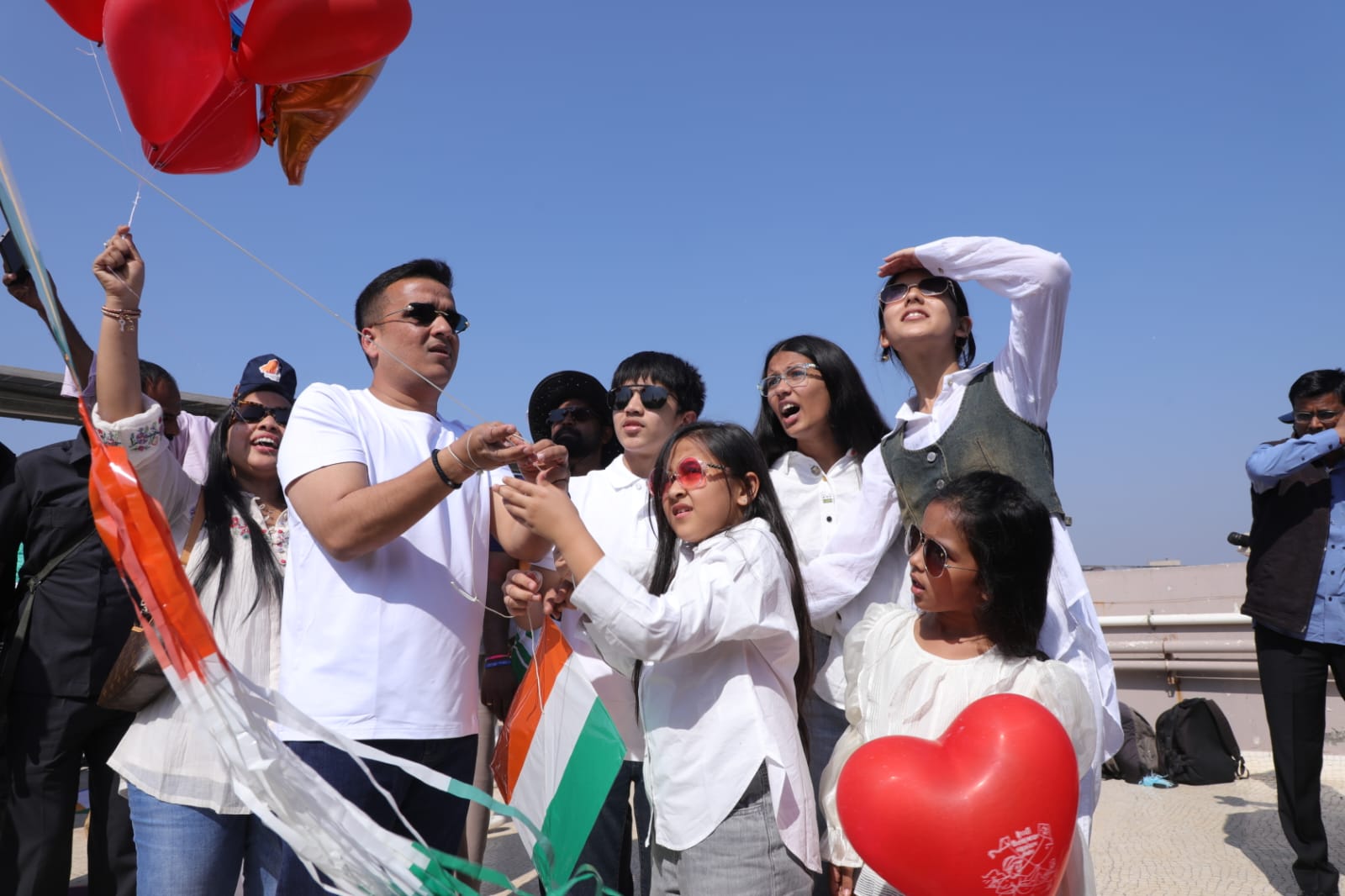મગદલ્લાના રિવુલેટ રેસિડેન્સીના ધાબા પર સંઘવીએ પતંગ ચગાવી પેચ લડાવ્યા હતા. સ્થાનિક રહીશોએ ‘કાઈપો ચે..’ના હર્ષનાદ સાથે નાયબ મુખ્યમંત્રી સાથે પતંગોત્સવમાં જોડાયા હતા.